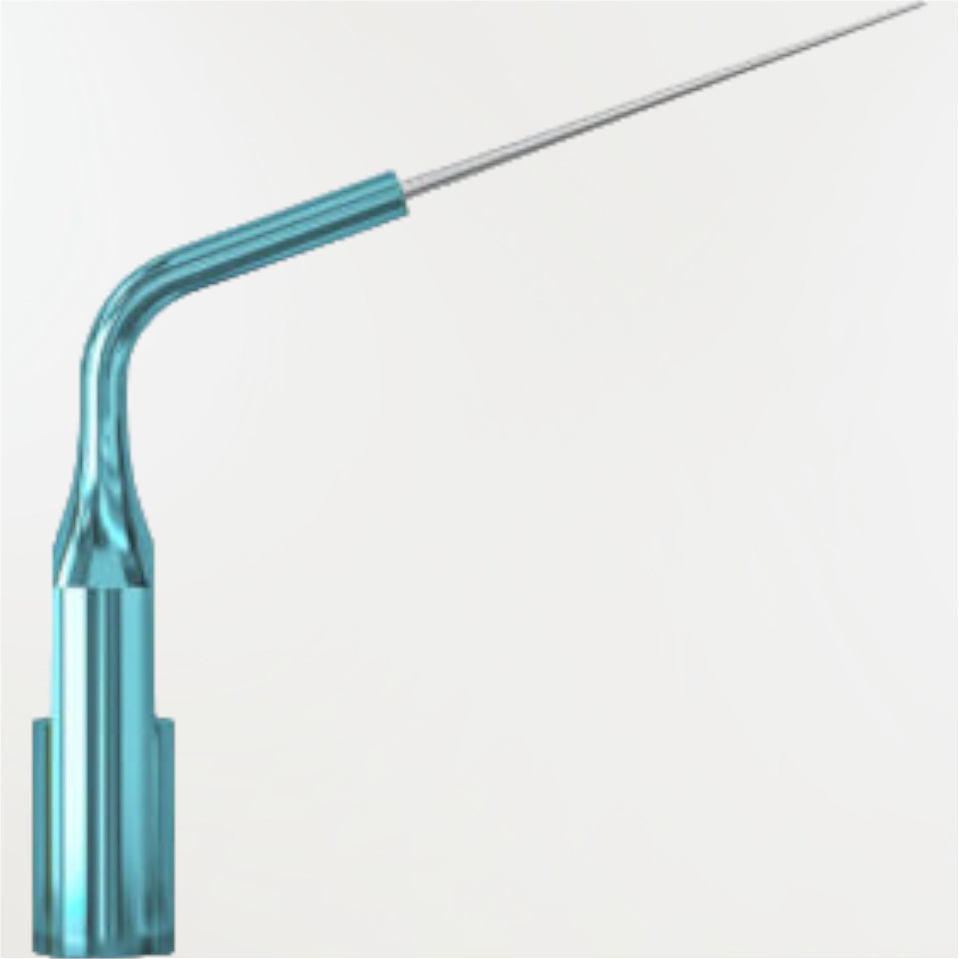 Les embouts bleus : De résistance intermédiaire entre les argentés et les dorés, les embouts bleus sont idéaux pour activer la solution d'irrigation mais également pour supprimer les résidus de matériaux que l'on peut retrouver sur les parois canalaires.
