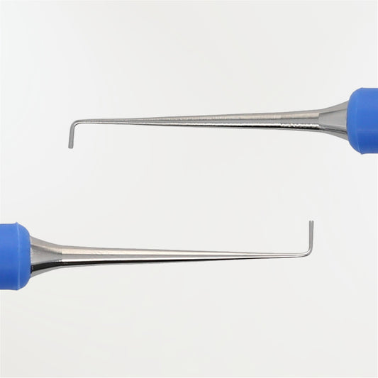 Sonde d'exploration endodontique longue, fine et très flexible. Sa finesse libère le champ de vision et permet un travail plus agréable sous microscope ou loupe binoculaire. L'excellence de la qualité de l'acier utilisé pour sa fabrication procure à l'instrument une sensation tactile hors du commun