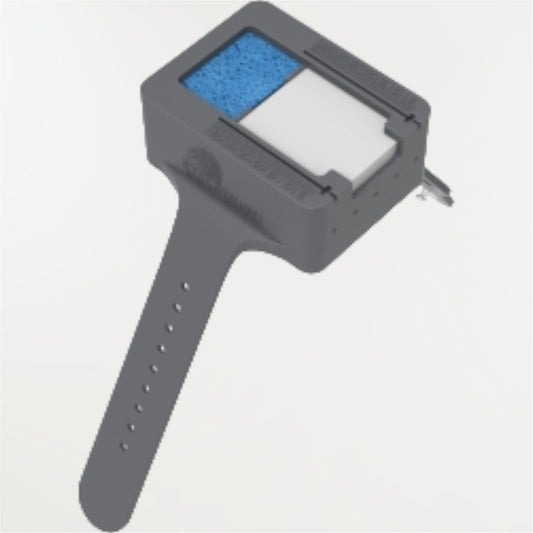 Porte limes qui se présente comme une montre en silicone. Permet de placer les limes à utiliser en cours de traitement, avec deux zones. Une zone pour les limes neuves, et une zone pour les limes usagées. Son utilisation facilite également le travail à 4 mains.