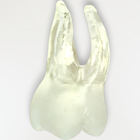 Transparent resin simulator showing a perforation of the pulp floor. This simulator is ideal for teaching the technique of orthograde perforation management.