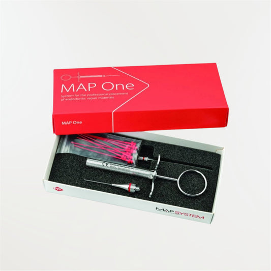 The MAP One is a precision syringe designed for practitioners who want to begin using MTA and bioceramics efficiently and with control. Simple, reliable, and ergonomic, it allows for localized application of the material in the most delicate areas of the tooth.